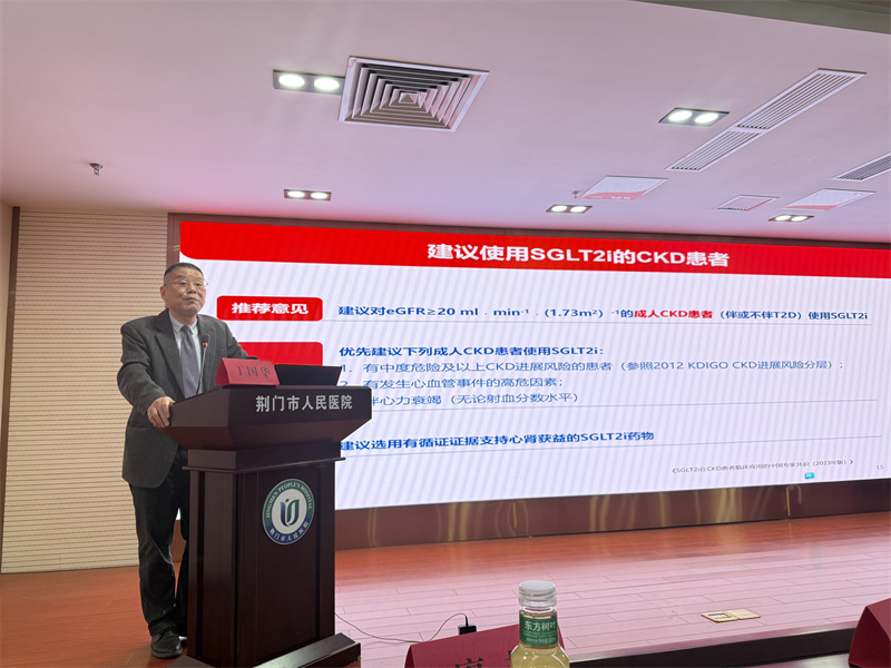 荆门市医学会肾病分会主任委员郑启刚致辞,他号召,以本次会议为契机,凝聚共识、携手共进,推动肾病诊疗质量再上新台阶,为患者提供更规范、更优质的医疗服务。