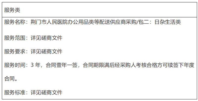 2、包名称 : 荆门市人民医院办公用品类等配送供应商采购/包二:日杂生活类