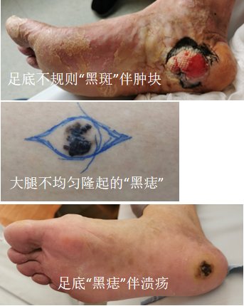 恶性黑素瘤的早期表现是在正常皮肤上出现黑色损害,或原有的黑素细胞痣于近期内增大,色素加深;随着增大,损害隆起成斑块或结节状,也可呈蕈样或菜花状,表面易破溃出血;周围可有不规则的色素晕或色素脱失晕……然而,临床上肉眼一旦发现病变,往往已经进入中晚期。