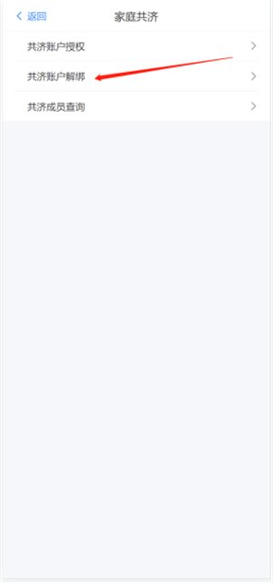 首页的“在线办理”模块-“账户共济”,进入后点击“共济账户解绑”选项。