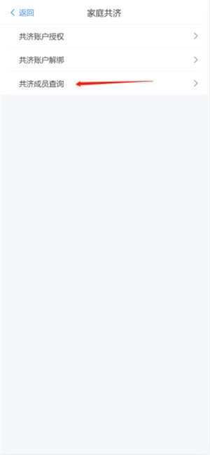 首页的“在线办理”模块-“账户共济”,进入后点击“共济成员查询”选项。