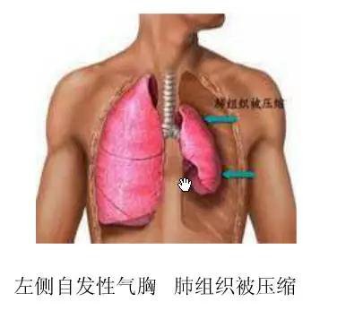 自发性气胸钟爱瘦高体型的年轻“小鲜肉”。许多人在发病前都有剧烈运动或剧烈咳嗽的情况,但并非所有患者发病都有明确诱因,一些人可能是在安静睡觉或读书看报时突然发生气胸。
