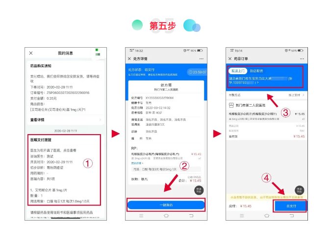 ①支付成功后即收到短信通知,返回公众号首页点击【到店取药凭证】查看详情;