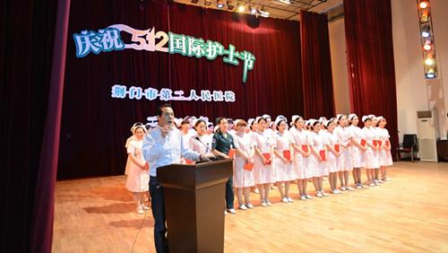 荆门市第二人民医院院长李成龙代表全院向辛勤耕耘、默默奉献的护理工作者致以节日问候。随着三级医院的成功创建、内科大楼及综合大楼的修建,医院即将进入一个崭新、快速的发展阶段,李成龙希望,全院医护人员团结一致,齐心协力,众志成城,和衷共济,知难而上,为医院的发展再创辉煌。