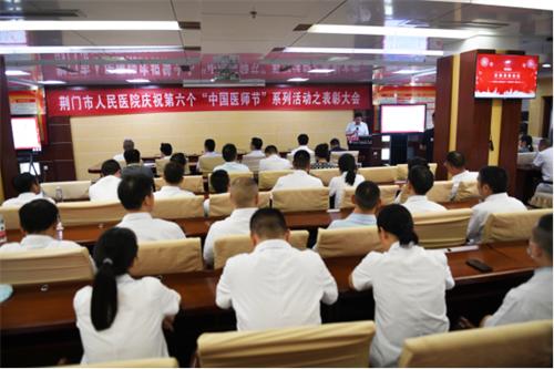 为表彰先进典型,激励全院医务工作者大力弘扬崇高的职业精神和伟大抗疫精神,勇担健康使命,推动医院高质量发展,8月18日,荆门市人民医院召开2023年“中国医师节”庆祝活动暨表彰大会。荆门市人民医院院长李军华致辞,院党委书记张勇等党政班子成员、职能部门成员、医师代表及受表彰个人参加会议。