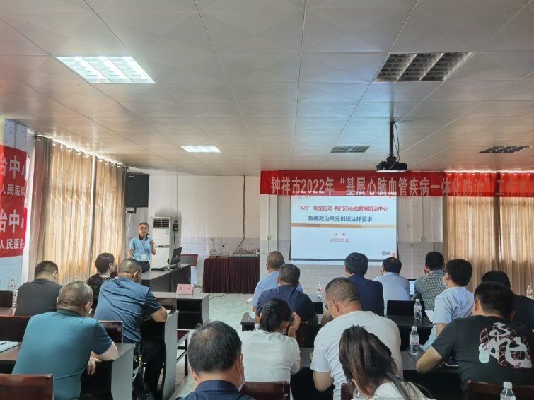 为深入推进基层心脑血管疾病一体化防治工作进程, 6月10日,荆门市“323”攻坚行动钟祥市基层心脑血管疾病一体化防治工作推进会在柴湖镇卫生院召开。荆门市“323”攻坚行动办公室副主任涂敏、心血管病防治中心主任李琳、脑卒中防治中心主任李威、钟祥市卫健局副局长陈爱东,钟祥市人民医院、钟祥市中医院、钟祥辖区内21家基层医疗机构相关负责人及医务人员近百人参会。钟祥市卫健局副局长陈爱东致欢迎辞并主持会议。