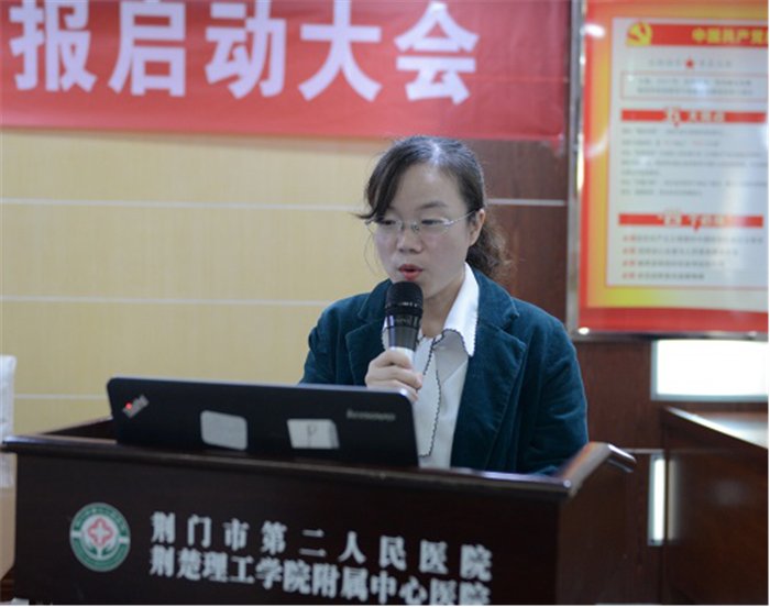 ▲荆门二医医务科科长涂敏介绍心脏康复中心创建启动情况
