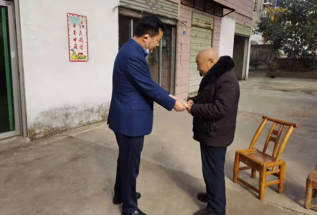 年前,医院驻吕集村工作队开展走访慰问和疫情防控巡查工作。图为驻村工作队队长、医院总会计师杨永新为贫困户送上慰问金和生活物资,并叮嘱村民一定要做好个人防护安全。