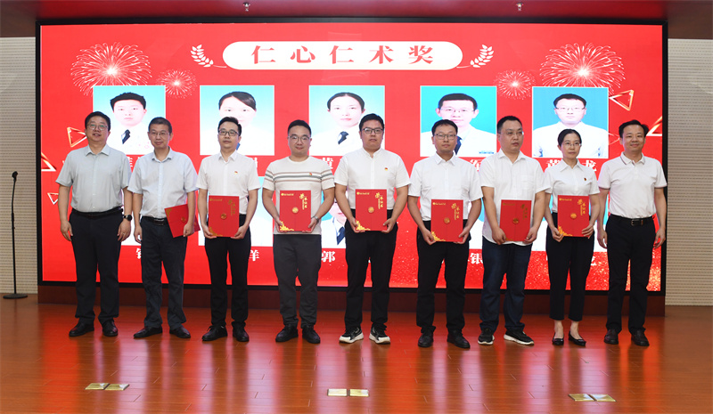 崇尚人文精神,彰显医者仁心。值此第七个“中国医师节”来临之际,荆门市人民医院举办了篮球赛/歌唱比赛、优秀病历评选大赛、优秀病例演讲比赛、优秀医师表扬会、医师节座谈会等一系列活动。会上,对优秀病历评比大赛获奖者、10名“优秀青年医师”、10名“优秀骨干医师”、10名“优秀科主任”、14名“三十年贡献奖”、10名“仁心暖医奖”、10名“柳叶刀奖”、10名“仁心仁术奖”、10名“团队协作奖”等进行了表扬、颁奖。同时,宣读了《荆门市东宝区卫生健康局关于对东宝区“优秀医疗管理工作者”“优秀骨干医师”“优秀青年医师”予以表扬的通报》。这既是对他们优秀品质和良好精神风貌的鼓励,也是对他们兢兢业业工作的认可,全院医务人员要向他们学习,希望他们再接再厉,在工作岗位上再创佳绩。