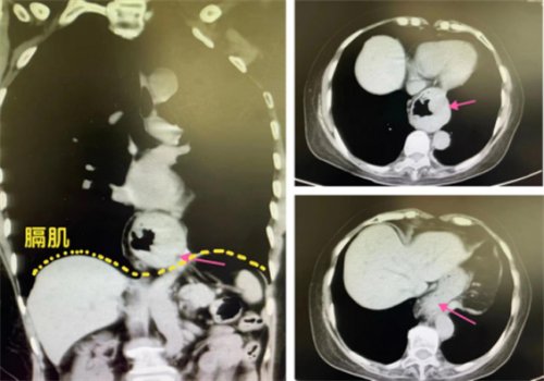 ▲ct影像显示部分胃组织“跑”到了胸腔