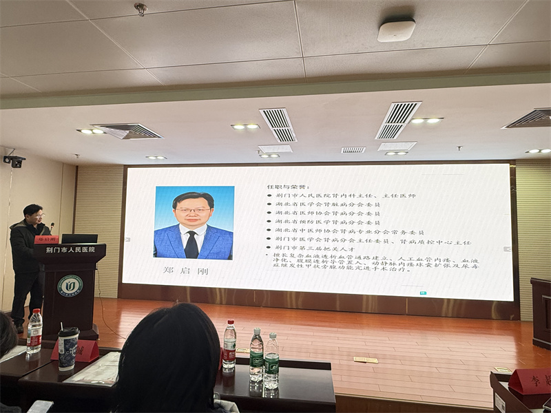 荆门市医学会肾病分会主任委员郑启刚致辞,他号召,以本次会议为契机,凝聚共识、携手共进,推动肾病诊疗质量再上新台阶,为患者提供更规范、更优质的医疗服务。